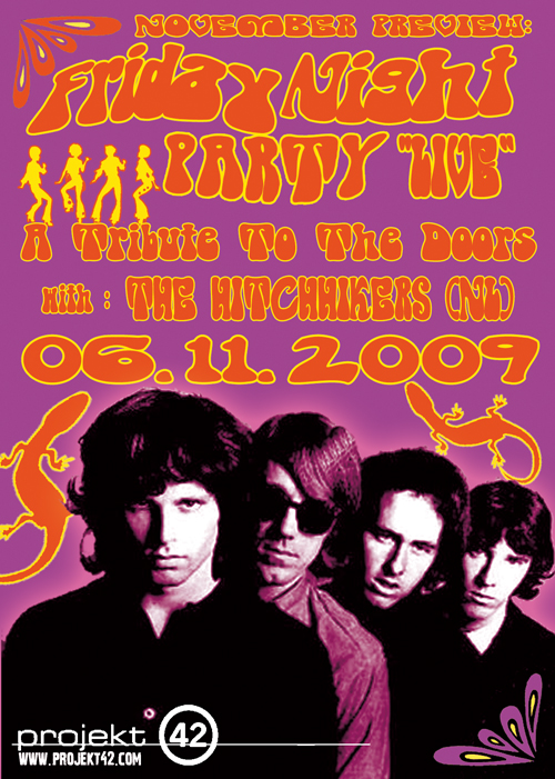 Danny ( Vocals ) und Dennis ( Keys ) beschlossen für eine The Doors Tributeband nach weiteren Musikern Ausschau zu halten und wurden schnell fündig! Die Hitchhikers wurden geboren!